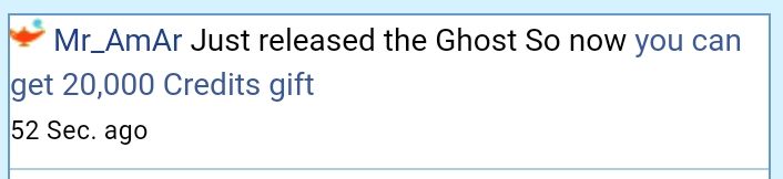@rAj_4eVer Just released the Ghost So now you can get 20,000 Credits gift....