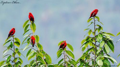Cherry on the top of the cake. Illusive, tantalizing, beautiful Scarlet finches. I was fortunate to witness so many scarlet finches all together. There are Photpgraphers who search for this beautiful birds and don't get glimpse of it even once in a lifetime. But I witnessed them on a real slippery way in a hills of North Sikkim in India.. We were 7 Photpgraphers there but it was only me to spot them. After taking photos I called them but in the hills there's no networks. I had to shout for them